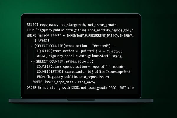 This guide shows software house founders how to run a ready-made BigQuery script that lists the top 1000 GitHub repositories with the fastest growth in…