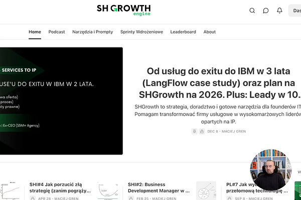 Od usług do exitu do IBM w 3 lata (LangFlow case study) oraz plan na SHGrowth na 2026. Plus: Leady w 10 dni z Twojego IP - jak mieć dobre…