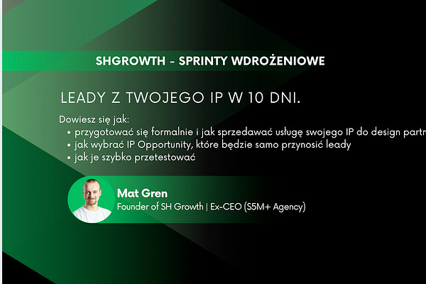 SHGrowth to strategia, doradztwo i gotowe narzędzia dla founderów IT. Pomagam transformować firmy usługowe w wysokomarżowych liderów opartych na IP.